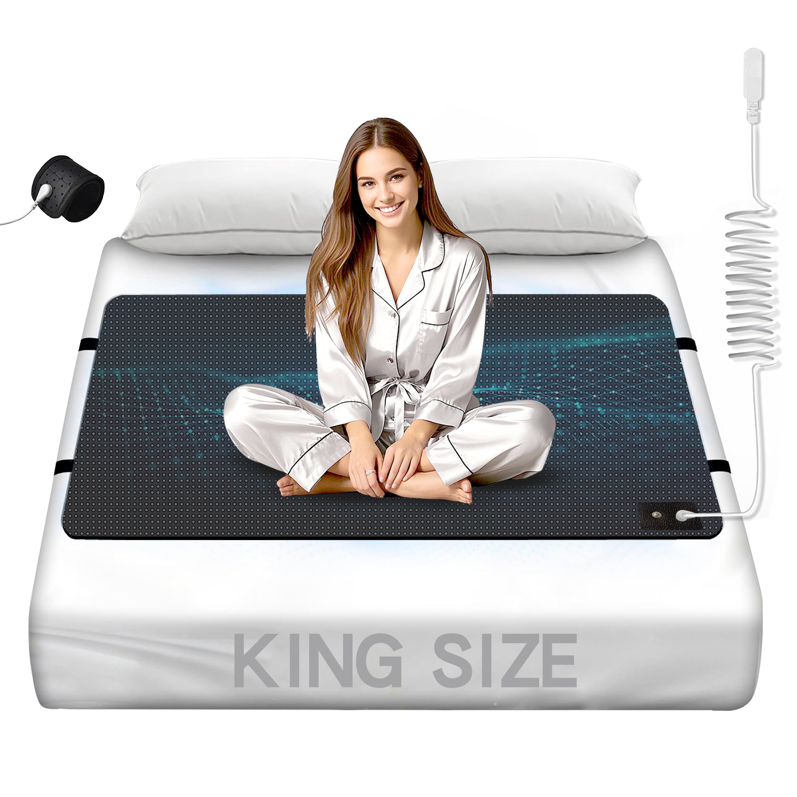 Easy To Use: our grounding sheet have two sizes that grounding sheets king and grounding sheets queen , Simply lay the grounding bed sheets on the mattress as you would a regular bed sheets, snap one end of the grounding wire to the grounding sheet, and plug the other end into the grounding port of the wall outlet.